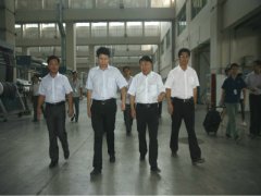 中國紡織工業聯合會會長孫瑞哲(左一)一行在視察,指導企業發展