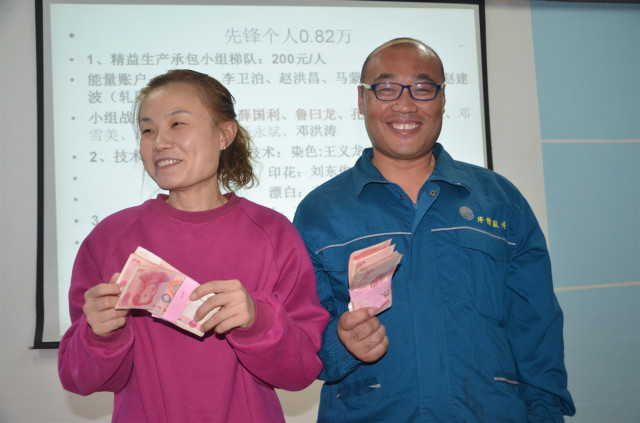 今年6月-10月,家紡車間精益生產(chǎn)小組成員標(biāo)準(zhǔn)操作能量值匯總排名前10位的員工是:340絲光精益生產(chǎn)小組朱兵兵以1585分排名首位,以下依次為:特整精益生產(chǎn)小組楊猛、定型整理精益生產(chǎn)小組趙洪昌、冷染精益生產(chǎn)小組陳長興、340絲光精益生產(chǎn)小組孔慶凡、冷染精益生產(chǎn)小組王士波、320拉幅精益生產(chǎn)小組劉曉斐、320拉幅精益生產(chǎn)小組馬蒙蒙、360定型拉幅機(jī)李奎、340絲光精益生產(chǎn)小組李海通。10月份精益生產(chǎn)小組(戰(zhàn)隊(duì))前三甲為:360拉幅精益生產(chǎn)小組、320拉幅精益生產(chǎn)小組、印花精益生產(chǎn)小組。質(zhì)量完成好生產(chǎn)小組是:卷烘精益生產(chǎn)承包小組、印制精益生產(chǎn)承包小組、軋染精益生產(chǎn)承包小組和翻縫精益生產(chǎn)承包小組。340絲光機(jī)傘柄箱改造、燒毛機(jī)濾芯防護(hù)、軋光機(jī)尼龍輥處加照明、執(zhí)行管理標(biāo)準(zhǔn)化看板創(chuàng)新等四項(xiàng)提案,為10月份優(yōu)秀提案;“烽火狼戰(zhàn)隊(duì)”340絲光精益生產(chǎn)承包小組榮膺紅色千里馬錦旗,同時(shí)獲得每人2000元、小組總計(jì)10000元的獎(jiǎng)金,另有四個(gè)小組分別獲得8000元、6000元、4000元、3000元不等的獎(jiǎng)金;“質(zhì)量先鋒”卜程程、藺春嶺各獲2000元獎(jiǎng)金。