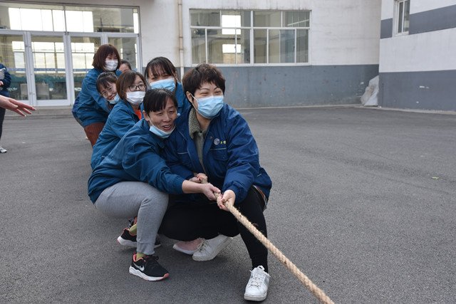 導(dǎo)讀:3月4日,在公司工業(yè)園區(qū)職工食堂廣場上,氣氛異常熱烈;隨著女工拔河比賽開始的哨聲響起,比賽場上的隊員們鉚足了勁兒往后拉,場上助威加油的啦啦隊加油聲不停。
