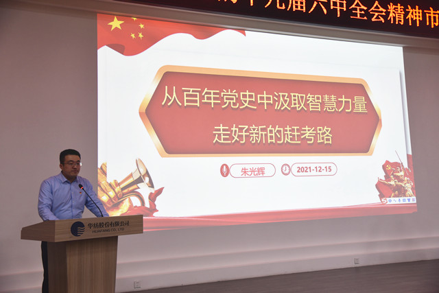 導讀:12月18日,市委宣講團成員、市政協臺港澳僑和外事委員會副主任朱光輝來到公司,對黨的十九屆六中全會精神進行專題宣講。