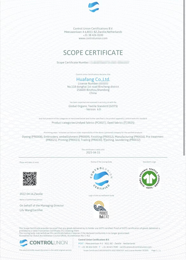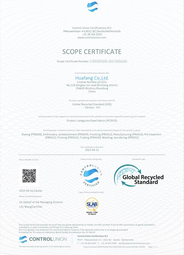 導(dǎo)讀:公司于3月份通過權(quán)威機(jī)構(gòu)的現(xiàn)場(chǎng)審核,順利取得GOTS/OCS/GRS證書。
