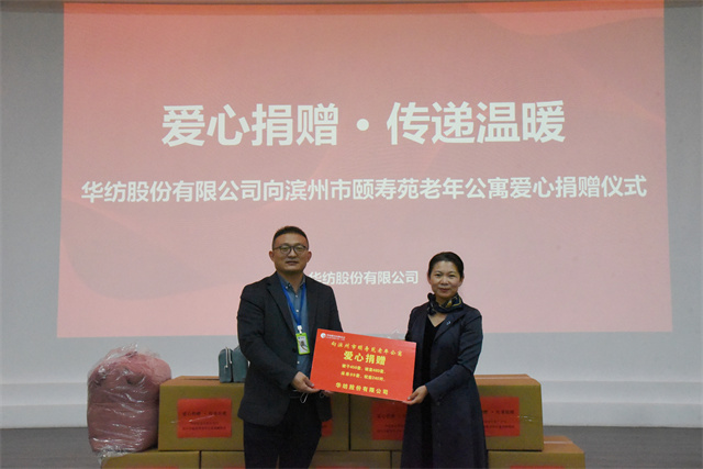 導讀:11月4日,公司舉行向濱州市頤壽苑老年公寓捐贈愛心物資的活動儀式。家紡分公司副總經理曲偉華、濱州市頤壽苑老年公寓院長鄢桂珍等參加了捐贈儀式。