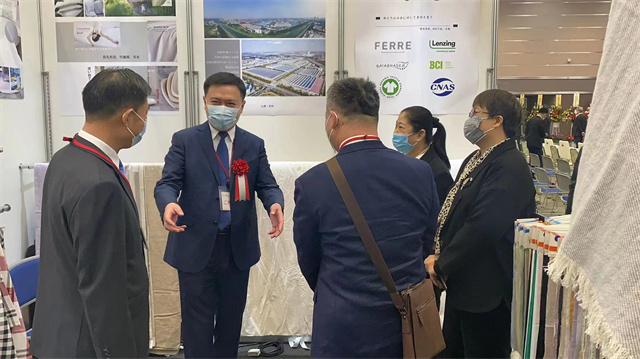 期間,濱州市委常委、副市長屈躍寬,濱城區(qū)委副書記、區(qū)長李剛到公司展位參觀指導(dǎo)。對(duì)展出商品的面料功能性以及銷售情況等做了細(xì)致的詢問,在詳細(xì)了解了企業(yè)的發(fā)展近況后,對(duì)公司近年來的發(fā)展表示高度認(rèn)可,并勉勵(lì)公司要錨定高質(zhì)量發(fā)展目標(biāo),抓住新機(jī)遇,借助此次展會(huì)的契機(jī),讓華紡的品牌走向世界。華紡股份有限公司綜合業(yè)務(wù)分公司總經(jīng)理石魯美表示,公司將依托“智能綠色工廠”優(yōu)勢(shì),實(shí)施轉(zhuǎn)型升級(jí)和智能化發(fā)展,通過管理提升和結(jié)構(gòu)調(diào)整,積極培育企業(yè)核心競爭力,全力打造持續(xù)創(chuàng)新的現(xiàn)代化品牌企業(yè),推動(dòng)企業(yè)向更高質(zhì)量、更高水平邁進(jìn)。