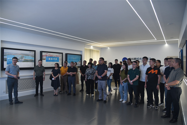 交流團一行先后參觀了公司智云中心、檢測中心、綜合辦公區、服裝面料公司、花布公司、家紡公司、創意中心、工程技術研究院、花布車間、面料車間、家紡車間、家紡成品車間、立體倉庫、服裝車間等。公司副總工程師、互聯信息部信息中心主任王國棟向交流團一行重點介紹了公司整體發展、科研成果、智能制造、轉型升級等情況。參觀過程中,交流團對公司的辦公環境、設施設備、科研隊伍建設等產生濃厚興趣,每到一處,都會停留駐足仔細觀察認真了解。
