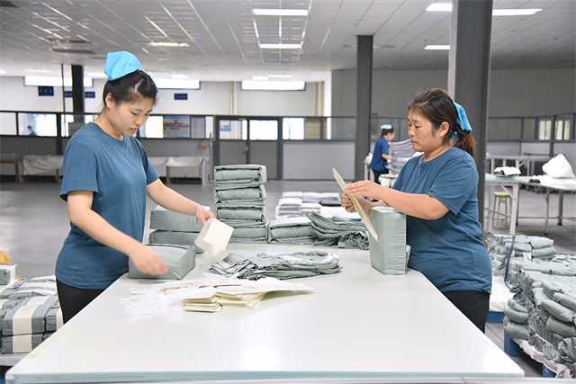 在高強度的工作環(huán)境下,王營和吳志叢不僅沒有放慢腳步,反而更加注重細節(jié),力求完美,確保每一件產(chǎn)品都達到卓越的品質標準。最終,憑借她們不懈的努力與頑強的拼搏,完成天絲枕套熨燙4000件,整疊包裝枕套1600對,以兩人之力完成了相當于五至六人的工作量。