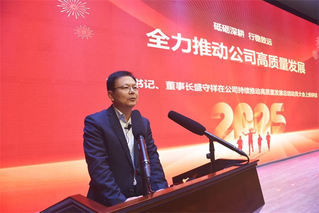 會議最后,公司黨委書記、董事長盛守祥同志作了題為《砥礪深耕 行穩致遠 全力推動公司高質量發展新征程》的講話。講話全面總結梳理了公司過去一年的工作,深刻剖析了實際工作中的問題,為新階段工作提出了指導性意見。2025年,公司將以“創新驅動、品質至上、綠色發展、智能升級”為戰略指引,主要圍繞“2025年目標指標、深化華紡再造、盈利單元突破、服務單元突破、董事會強引導”等五個方面扎實開展工作,全力推動公司高質量、可持續發展。