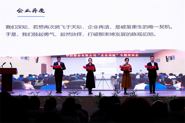 活動中還進行了精彩的文藝匯演。朗誦《破繭重塑,企業新章:再造之路的激昂交響》,那激昂的話語,在會場中久久回蕩,仿佛沖鋒的號角,激勵著每一位員工在企業再造的道路上勇往直前;歌曲《新時代華紡人》展現出了新時代華紡人蓬勃的朝氣與活力;歌曲《再一次出發》表明了全體華紡人以昂揚的斗志、堅定的信念踏上企業再造之路,持續奮進、共創高質量發展新局面的堅定決心。