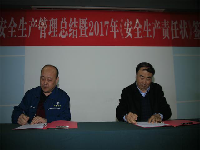 閆英山在總結歸納中,對做好安全生產工作提出三項具體要求:第一,持續深化對安全重要性的認識;第二,持續夯實責任主體;第三,持續強化安全工作的超前預控工作。會上,公司黨委書記、董事長王力民分別與總經理閆英山、安全總監孫中然簽訂了《安全生產責任狀》;閆英山分別與各主體生產車間等第一責任人簽訂了《安全生產責任狀》。
