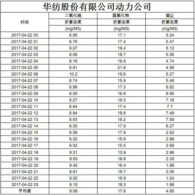 煙氣排放數(shù)據(jù)信息公開2017.4.22數(shù)據(jù)