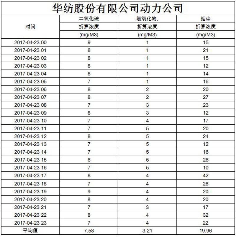 煙氣排放數據信息公開2017.4.23數據