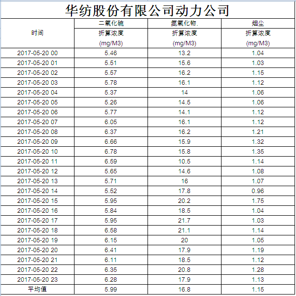 煙氣排放數據信息公開2017.5.20數據