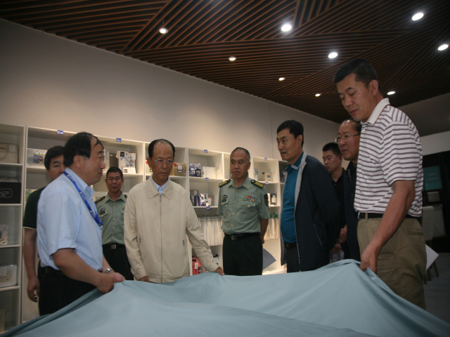 市人大常委會副主任呂德章,市政協(xié)副主席吳國瑞、趙建明,濱州軍分區(qū)參謀長許增全,公司黨委書記、董事長王力民,副總經理孫中然等,陪同張文臺上將一行參觀了家紡展廳等處所。