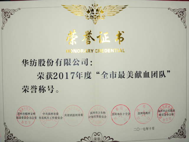 公司榮獲“全市最美獻血團隊”稱號