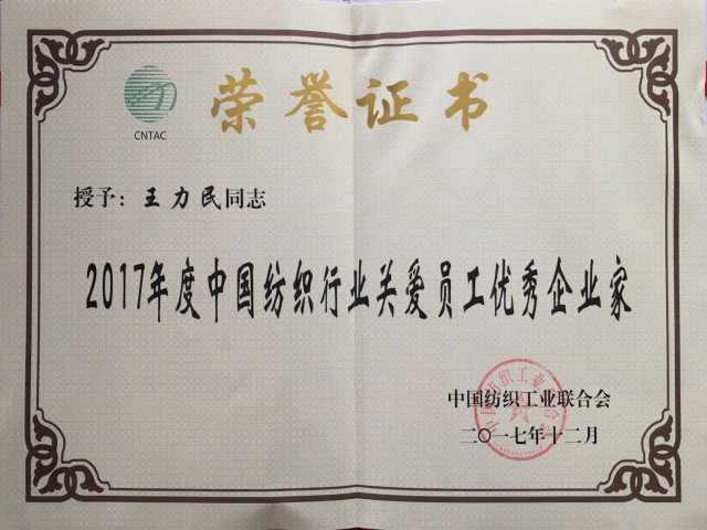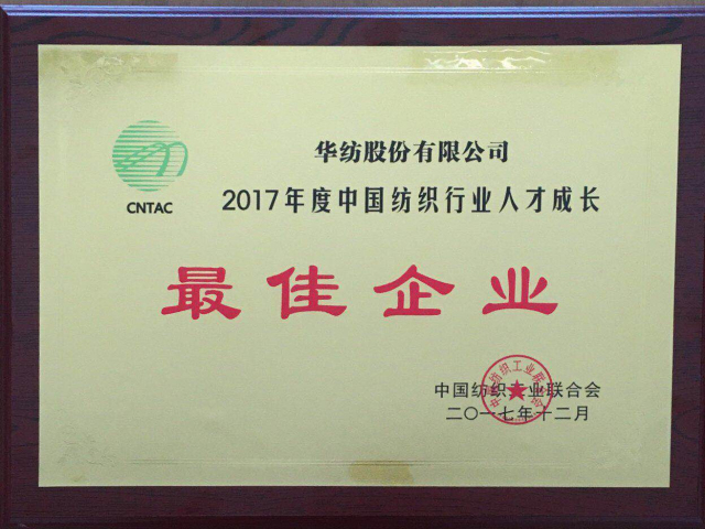 日前,中國紡織工業(yè)聯(lián)合會2017年人才工作大會在濟南召開,會上表彰了人才建設(shè)工作先進單位和個人。公司以在人才機制建設(shè)、人才培育成長等方面的良好成效,榮獲“2017年度中國紡織行業(yè)人才成長最佳企業(yè)”稱號;公司黨委書記、董事長王力民以對廣大員工及各類人才的關(guān)愛情懷,榮獲“2017年度中國紡織行業(yè)關(guān)愛員工優(yōu)秀企業(yè)家”稱號。
