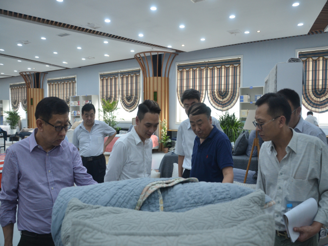 近日,美國某知名公司總經(jīng)理馮海帆、產(chǎn)品發(fā)展部經(jīng)理譚旭輝、產(chǎn)品銷售部經(jīng)理邵嘉琪一行來公司參觀考察。公司董事長王力民陪同客人參觀了花布二車間、花布制版、家紡展廳、智能立體化倉庫、工程技術研究院、創(chuàng)意中心等處。